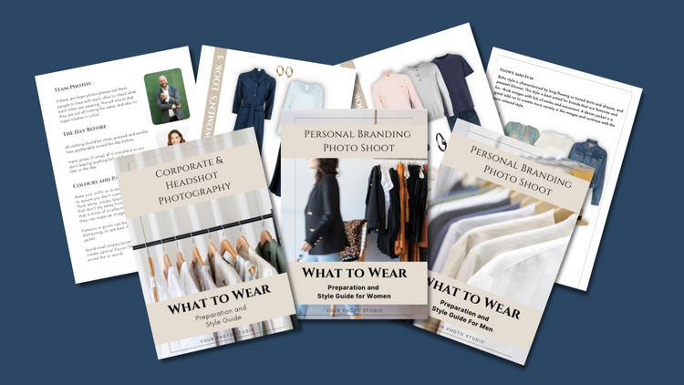These style guide templates have each been created to act as a go-to resource you can send to your clients ahead of their shoot. They cover everything your clients need to know about how to dress and style themselves for their shoot, including how to choose colours and outfits that will align with their brand/workplace to help ensure they get the best images possible.